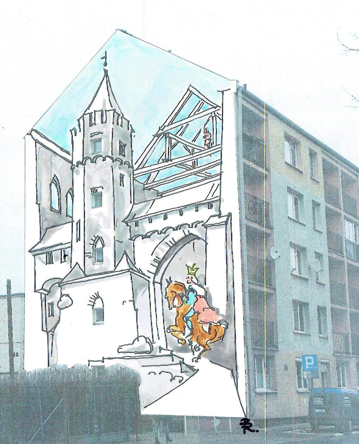 Plan remontów na 2018 przewiduje ocieplenie ścian szczytowych budynków ścian szczytowych budynków przy ulicy Marii Magdaleny Cegielskiego i Kazimierza Wielkiego. Spółdzielnia posiadając uzgodnienia ze służbami miejskimi na wykonanie prac i pomalowanie elewacji w kolorystyce będącej kontynuacją wizualizacji ścian od strony ulicy, przystąpiła do realizacji prac. Do Spółdzielni wpłynęła jednak propozycja wykonania na ocieplanych ścianach murali nawiązujących treścią do patronów ulic. Projekty te przedstawiamy poniżej.